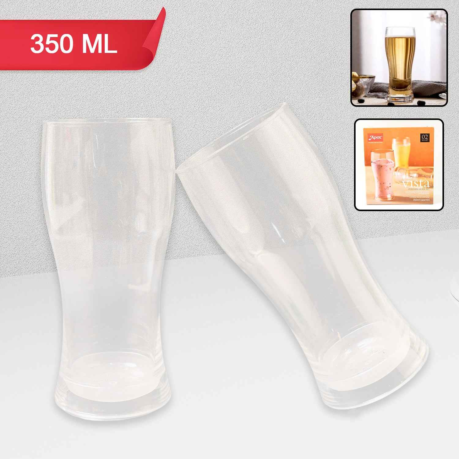Vista Unbreakable Pitcher Glass Set – 350 ML (Approx) | 2-Piece Crystal Clear Plastic Tumbler Set for Water, Juices, Shakes & Beverages | Premium Drinkware for Home, Hotels, Travel & Parties