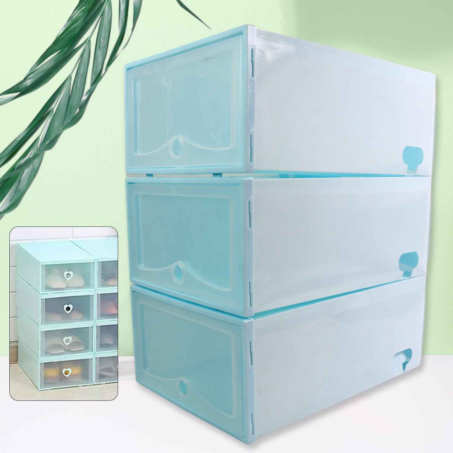 3 Layer Plastic Shoes Storage Box, Stackable Shoe Storage (1 Set / 3 Layer Set)