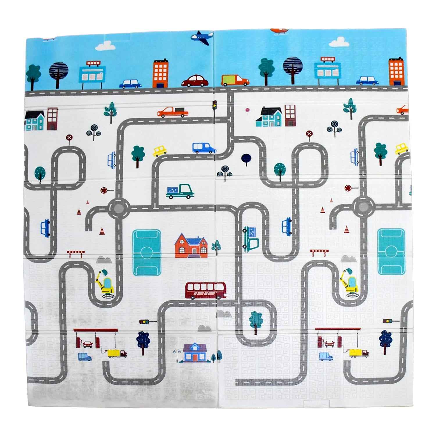 - Baby playmat has double sides patterns with colorful animals and train tracks. Foam puzzle play mat for toddler encourages children’s play in a creative way with room for friends to join in, baby play mats provide an area to racing and play. Floor foam playmat with a carrying case does not take up space, great for storing. Floor kid play-mat can easily be folded up and lightweight for travel or any outdoor activities. Perfect carpet for beach, picnic, lake or camping.