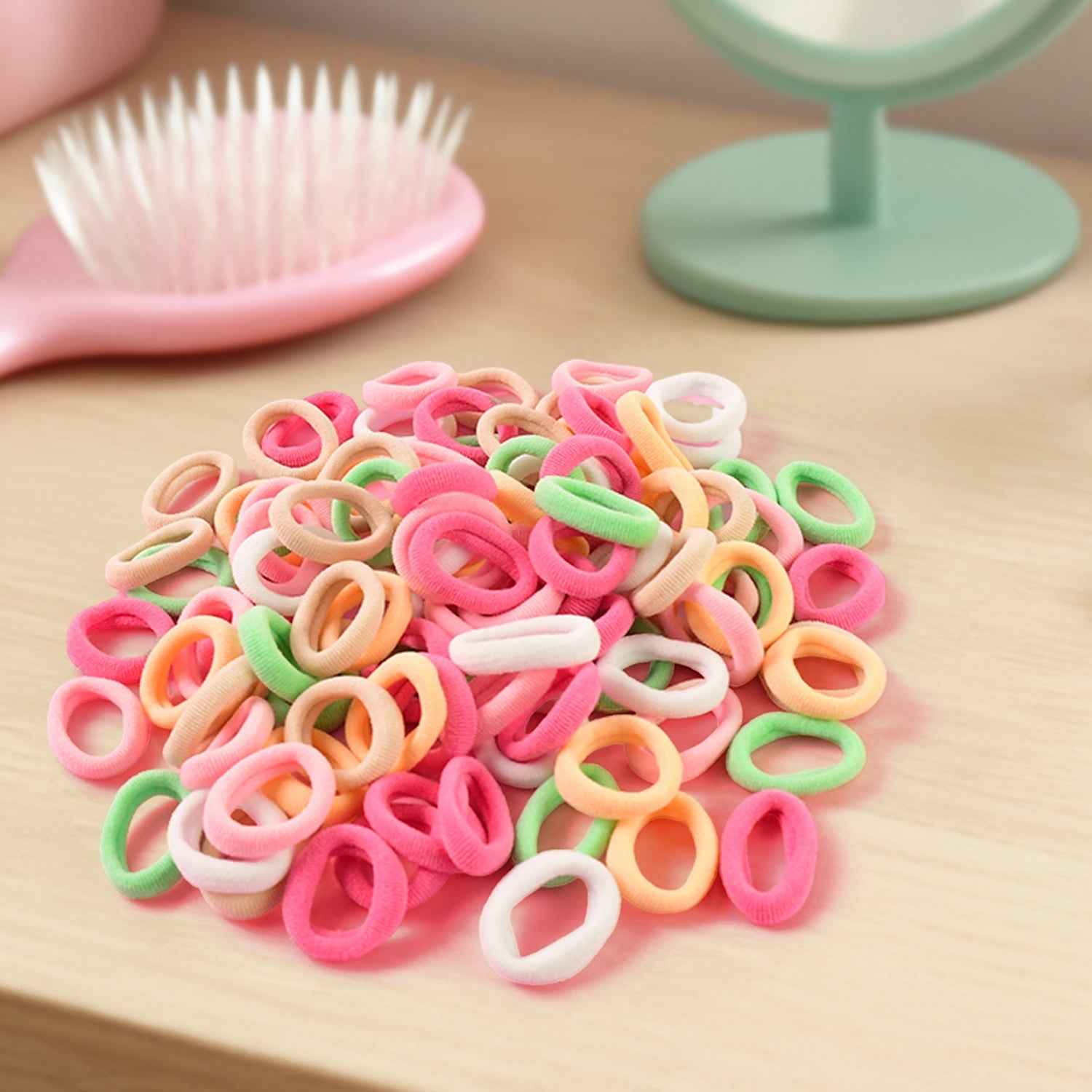 Add a pop of color and comfort to your child's hairstyle with this 100-piece set of soft elastic hair bands. Designed specifically for delicate hair, these vibrant, fabric-wrapped bands are gentle on the scalp, easy to stretch, and do not pull or snag hair. Perfect for creating ponytails, braids, or creative hairstyles, these no-metal hair ties are an everyday essential for young girls and toddlers. The set includes a wide mix of pastel and bright shades that make hair styling fun and cheerful.