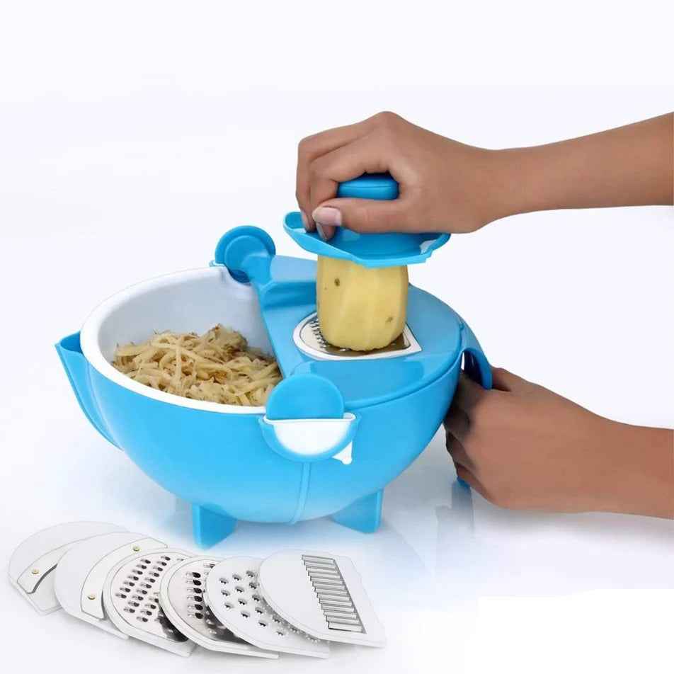 Multifunctional Vegetable Fruits Cutter Shredder with Rotating Drain Basket